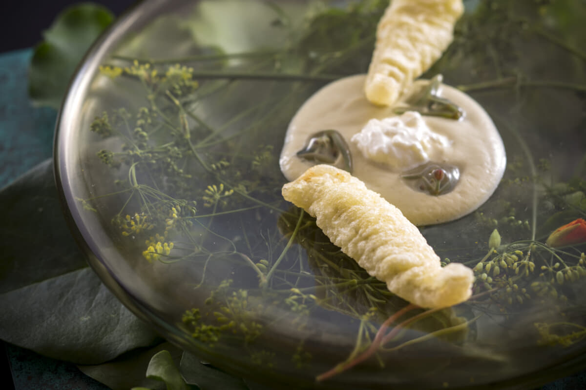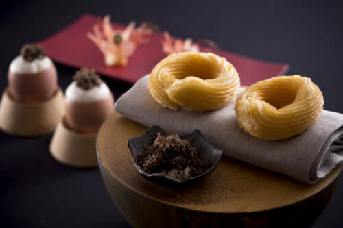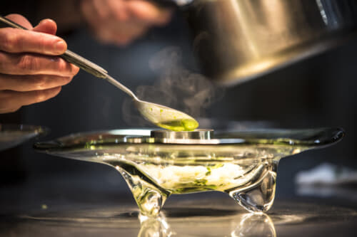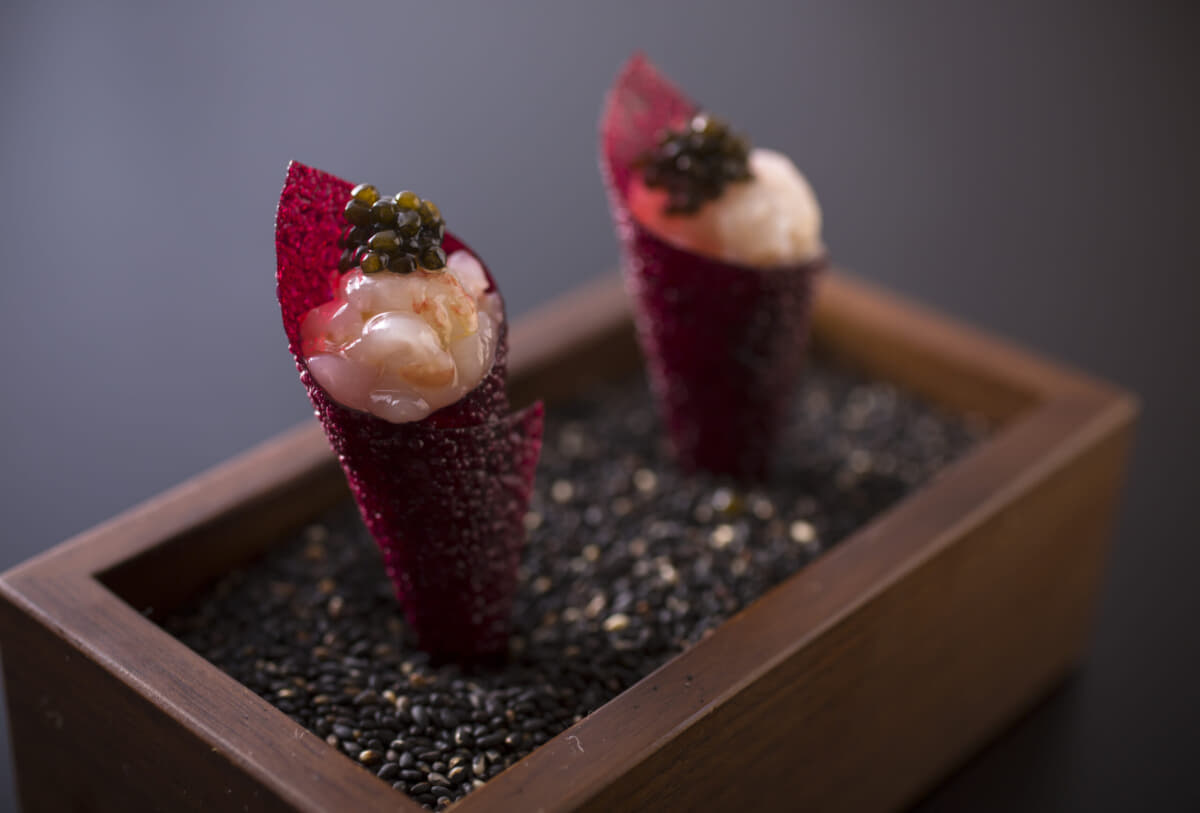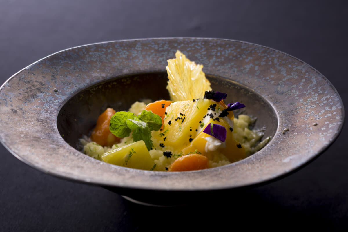 和・洋・中などの従来の料理ジャンルにとらわれず、独創的かつ自由な発想で五感を刺激する料理。