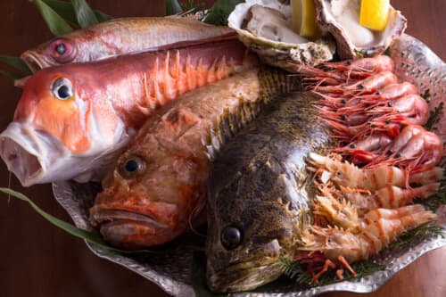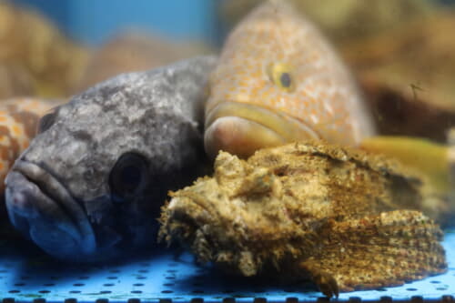 星音には所有する3つの水槽には12の漁港から新鮮な魚介類が届きます。